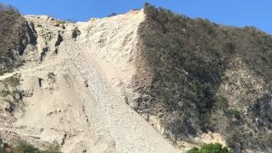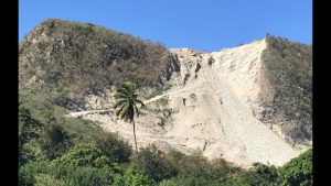 Allí han abierto un enorme hueco en busca de piedras para ser usadas en la construcción de un rompe olas en las controversiales plantas a carbón que se levantan en Punta Catalina.
