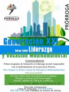 Aclara que el programa de fomento de liderazgo juvenil medioambiental es una propuesta piloto que busca ser mejorada con diversas actividades preliminares. En ese sentido, el CCP dará inicio a un primer taller de liderazgo juvenil ambiental para la formación de un cuerpo de líderes ambientalistas que llevará el nombre de ‘Generación XXI’, en referencia al compromiso que los jóvenes ‘millennials’ deben asumir frente al cambio climático y otros eventos y afecciones atmosféricas. Este taller inicia el sábado 11 de febrero de 2017 en sus instalaciones a partir de las 2:00 p.m. y tiene una invitación abierta a todos los jóvenes con un tope de 25 años de edad.