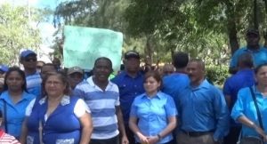 Los educadores se movilizaron este miércoles en el parque central de Baní en rechazo al pacto entre su gremio y el Ministerio que dispone un aumento de un 10% al salario base.
