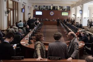 WASHINGTON, Distrito de Columbia.- La Organización de Estados Americanos (OEA) adoptó en una tensa sesión una resolución que afirma que en Venezuela hay una «grave alteración inconstitucional del orden democrático» y exige al Gobierno de Nicolás Maduro que restaure «la plena autoridad» de la Asamblea Nacional, de mayoría opositora.