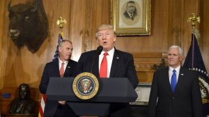 Durante un discurso pronunciado en Pensilvania en octubre último, Trump, entonces candidato republicano, expresó que en las elecciones del 8 de noviembre los estadounidenses votarían por su plan de 100 días para restablecer la prosperidad del país.