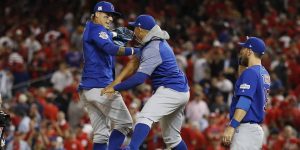 Tras un error del tercera base Anthony Rendon en el sexto episodio y con dos outs, los titulares de 2016 pisaron par de veces el home por sendos sencillos impulsores de Kris Bryant, quien se coló en segunda tras su conexión, y Anthony Rizzo.