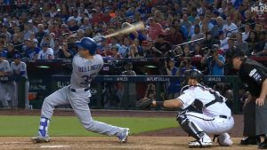 Bellinger jonroneó en el quinto y después hizo una audaz atrapada para poner fin al inning. El primera base cayó al dugout de los Dodgers al atrapar el elevado de out al campocorto de Jeff Mathis, y estuvo a punto de caer sobre el regazo del manager Dave Roberts.