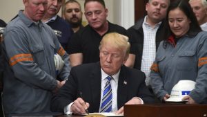 WASHINGTON, Distrito de Columbia.- El presidente Donald Trump firmó el jueves las órdenes que imponen aranceles a las importaciones de acero y aluminio en respuesta a lo que él califica de «ataque a nuestro país».