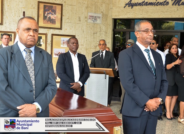 En la explanada frontal del ayuntamiento, el alcalde Chacho Landestoy, los miembros del Concejo de regidores, autoridades gubernamentales, civiles y familiares del extinto munícipe, montaron una guardia de honor y se pronunciaron panegíricos en reconocimiento al servicio público de Aguasvivas.