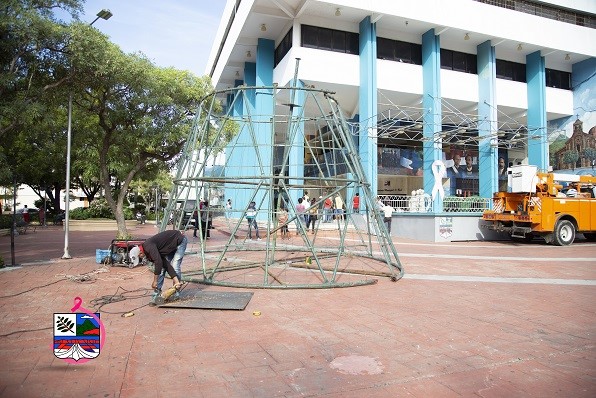 BANÍ, República Dominicana.- Ya se están viendo los preparativos para adecuar el área de la plaza cultural Joaquín S. Inchaustegui al ambiente navideño. Se observan desde ya trabajadores armando el andamiaje del árbol de Navidad y algunos charamicos en los alrededores de la Plazoleta.