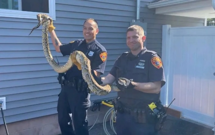Los oficiales de policía del condado de Suffolk, Argand Reyes, presuntamente dominicano, y John Angus al llegar a la residencia de la familia, no identificada por las autoridades, encontraron el reptil de 9 pies enrollada dentro de un cubo de basura.