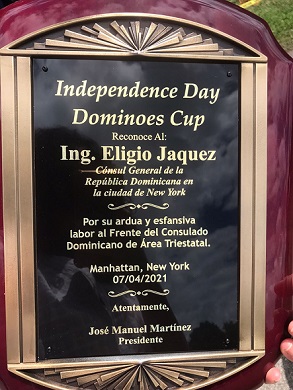 La distinción fue entregada en la 8va edición de la Copa Independencia de Dominó, la cual fue efectuada el domingo 4 de julio fecha en que se celebró la Independencia Nacional de los Estados Unidos, en Dyckman Park, ubicado en el sector de Inwood del condado de Manhattan.