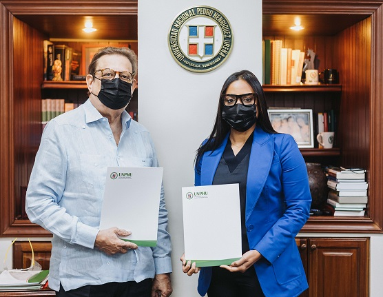 Durante la firma del acuerdo estuvo presente la presidenta de Pedro Martínez Foundation, Carolina Cruz de Martínez; el rector de la casa de estudio, Miguel Fiallo Calderón; la vicerrectora de Proyectos de Investigación, Josefina Pepín; el coordinador de la Dirección de Vinculación, Francisco García Perdomo y la asistente de Dirección, Neulis Vizcaíno.