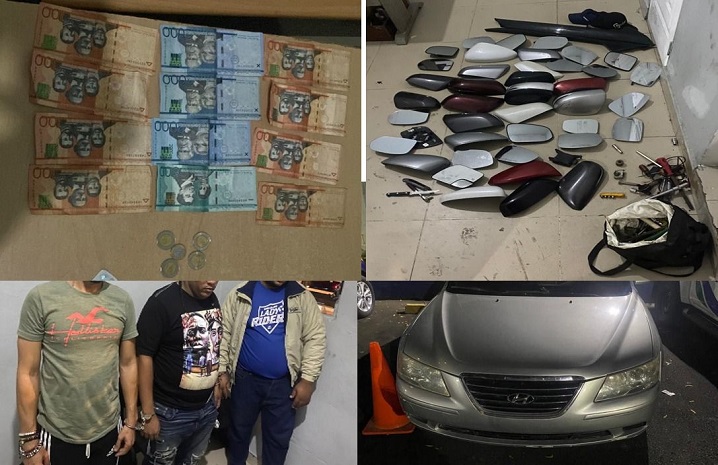 La banda, según la Policía, se dedicada al robo y venta ilegal de piezas sustraídas de vehículos, por lo que durante sus arrestos se les ocuparon la cantidad de (21) espejos retrovisores, (19) protectores de retrovisores, (2) ribetes de color negro y un bulto conteniendo en su interior varios hierros, (3) teléfonos celulares y RD$7,345, pesos en efectivo.
