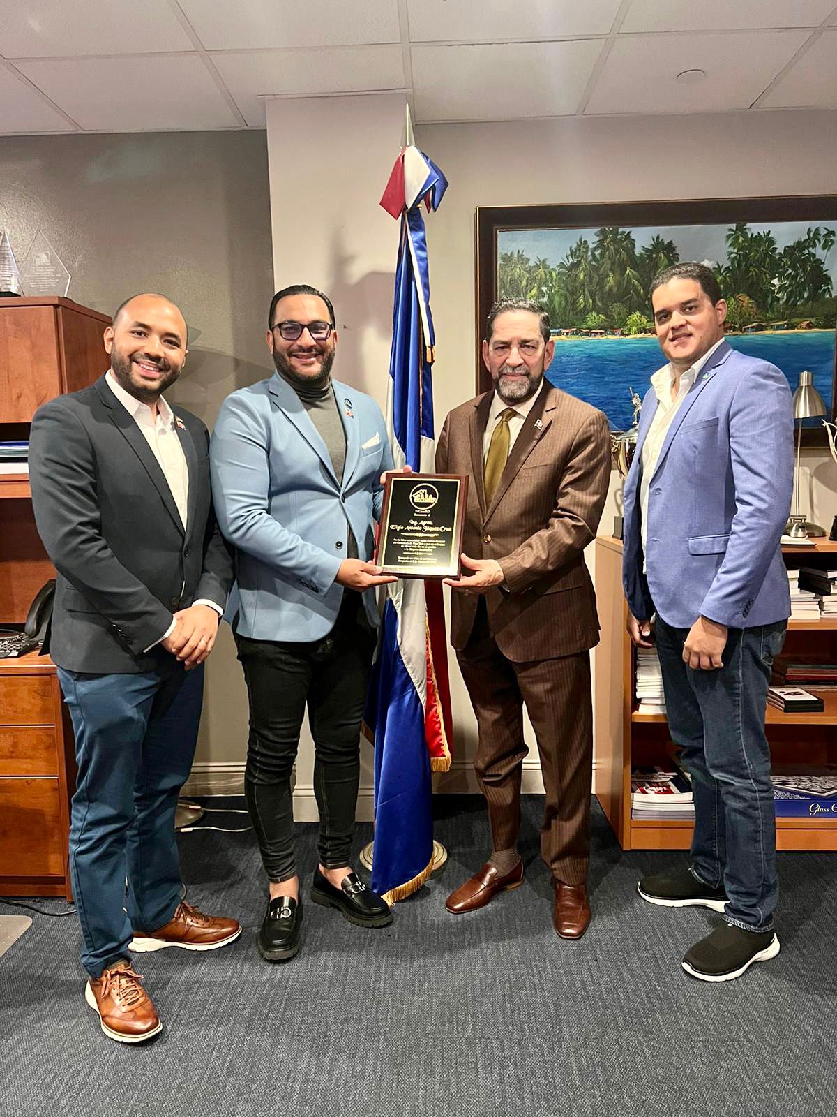 TuCasaRD, hizo entrega de un reconocimiento a la trayectoria y aportes realizados por Eligio Jáquez, durante la reunión donde se compartieron impresiones del éxito en materia de inversión que se está gestando en la República Dominicana y conversaron de los próximos proyectos en colaboración a futuro.