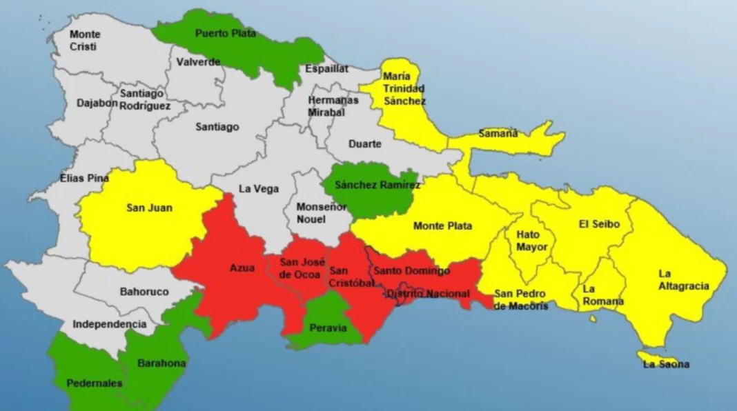 SANTO DOMINGO, República Dominicana.- El Centro de Operaciones de Emergencia (COE) de la República Dominicana colocó hoy a cuatro provincias y al Distrito Nacional en alerta roja (máximo riesgo) debido a las intensas precipitaciones y tormentas eléctricas asociadas a una onda tropical.