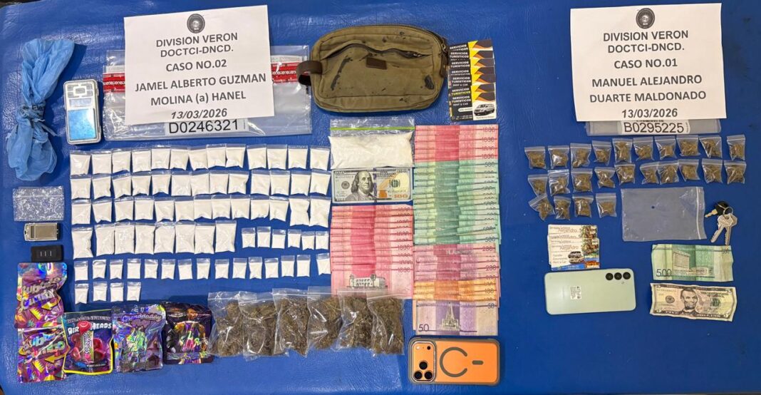 PUNTA CANA, República Dominicana.- La Dirección Nacional de Control de Drogas (DNCD) y miembros del Ministerio Público, dentro de su firme misión de atacar el tráfico de sustancias narcóticas, arrestaron a cuatro hombres y ocuparon cientos de gramos de distintos estupefacientes, en operativos realizados en las últimas horas en el municipio de Veron, Punta Cana, provincia La Altagracia.