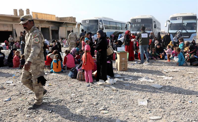Desplazados por los combates en Mosul, Irak. Foto crédito | Agencia EFE.